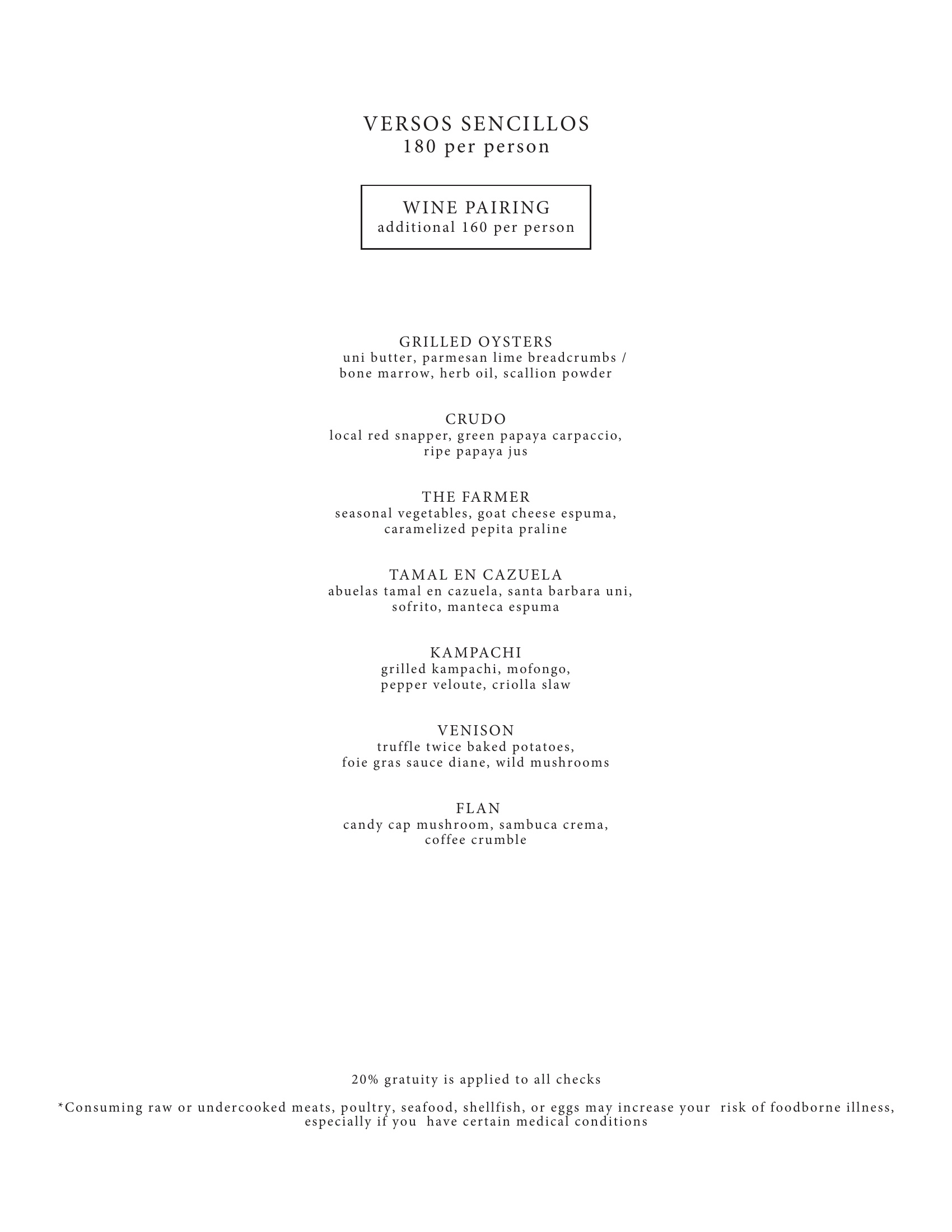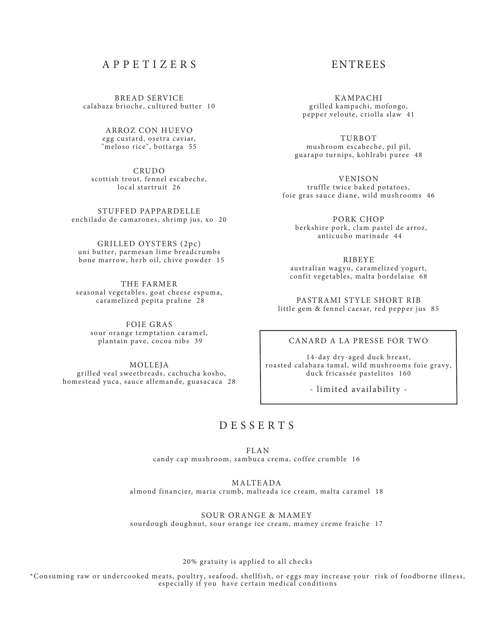 *20% Gratuity added to all checks. If you have allergies, please alert us as